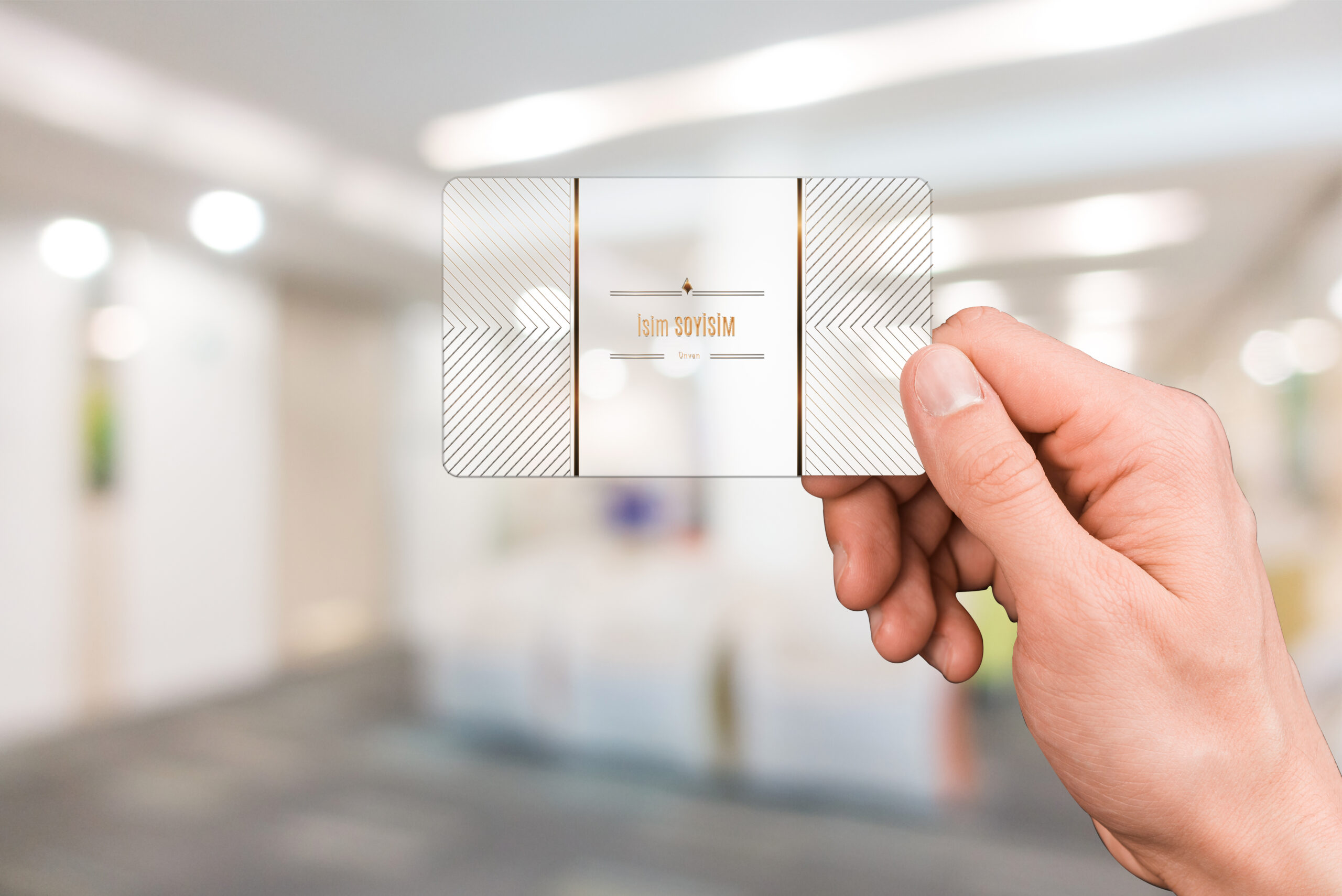 Şeffaf Buzlu PVC Kabartma Laklı Altın Yaldızlı Özel Kesim Kartvizit